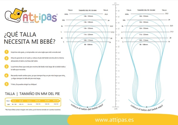 Para saber la talla de tu peque solo tienes que medirle desde el talón hasta los deditos y dejar unos cm de margen.