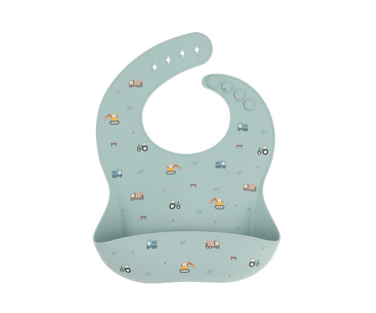 Babero de silicona con un bolsillo recogemigas para evitar que caiga la comida a la ropa.