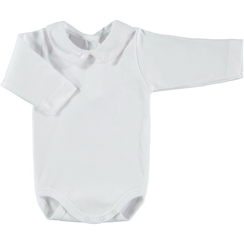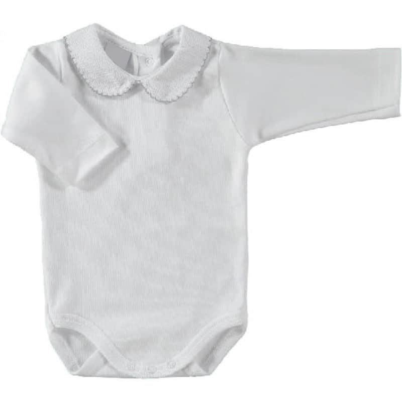 Body Unisex con cuello estilo bebé con tejido de piqué, apertura trasera mediante cierres automáticos.