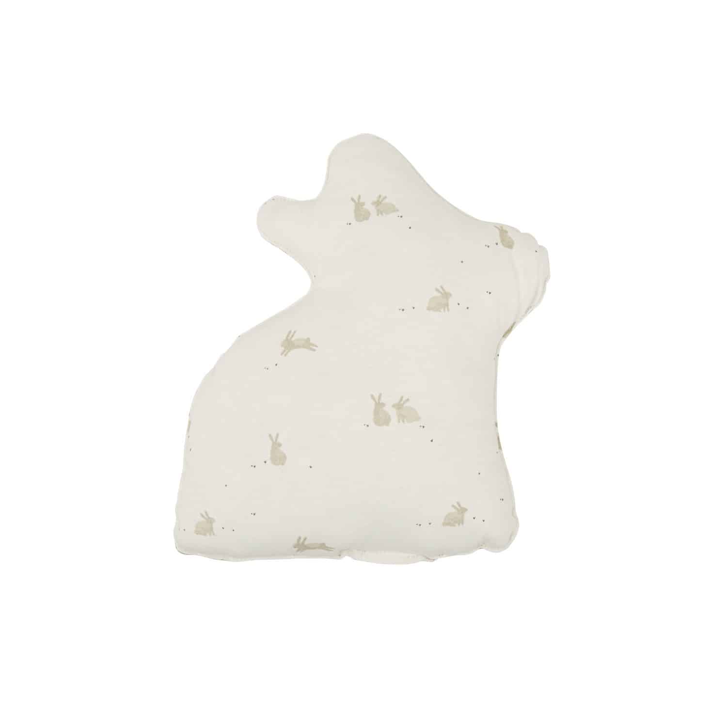 orgánico certificado eco-friendly. Se presenta en forma de conejito en una combinación de colores blanco y verde a juego con la colección.