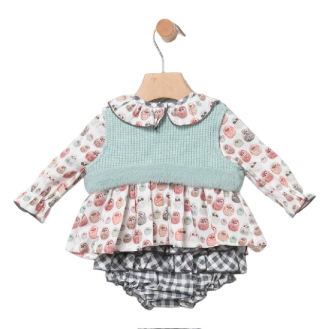 Ranita con estampado de cuadro vichy y chaleco en color verde mint y detalle pelito.