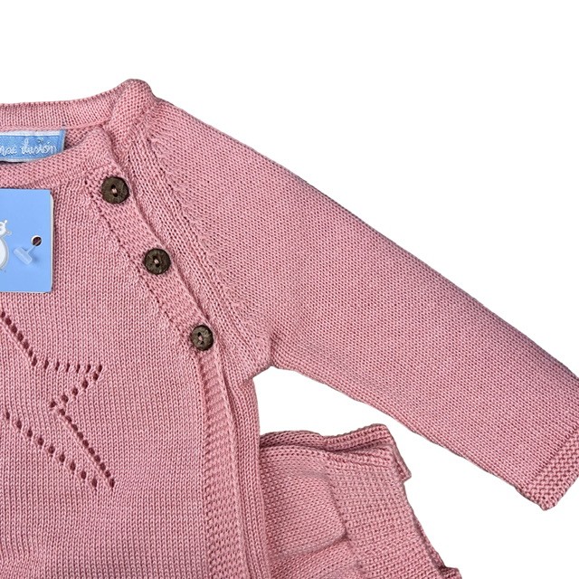 Conjunto de hilo perlé en color rosa maquillaje con detalle estrella calada en el pecho.