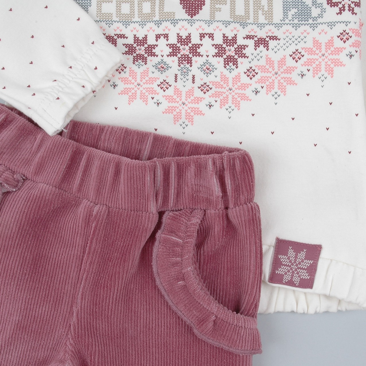 Sudadera 100% algodón con interior afelpado en color beig. Estampado invernal en color malva.