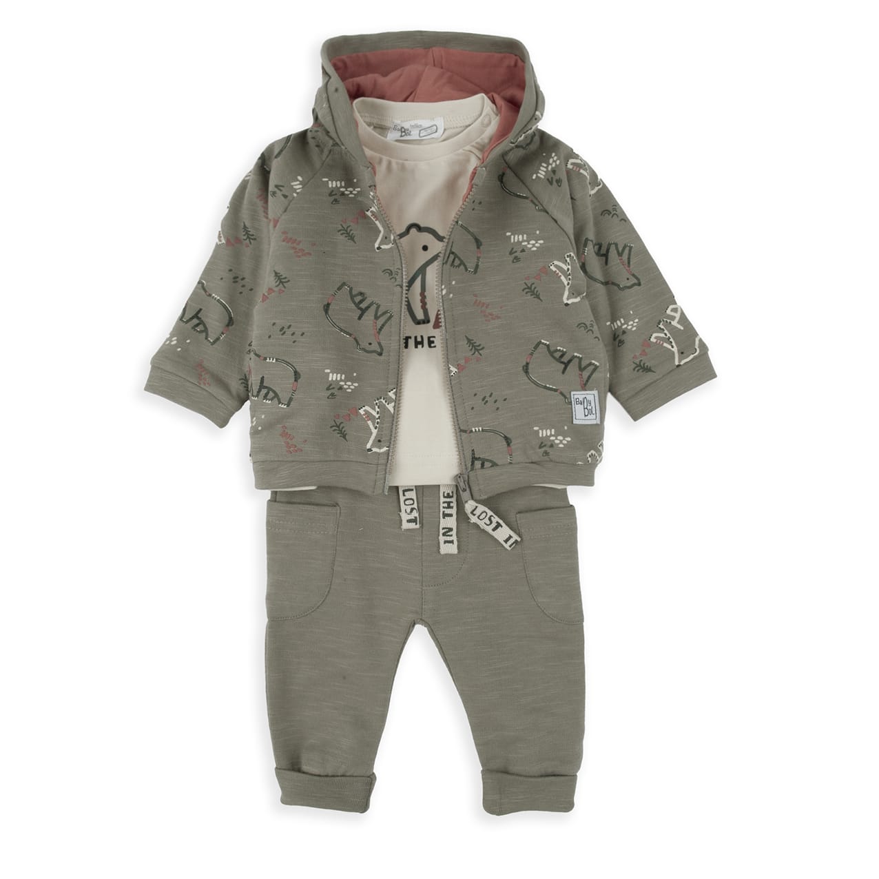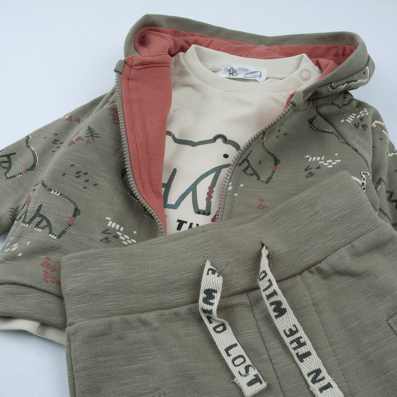 Conjunto 3 piezas 100% algodón de color verde oliva.