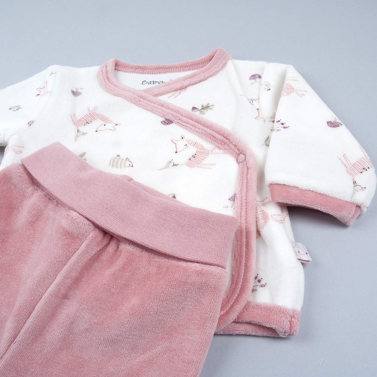 Conjunto 2 piezas de terciopelo en color beige y rosa empolvado.