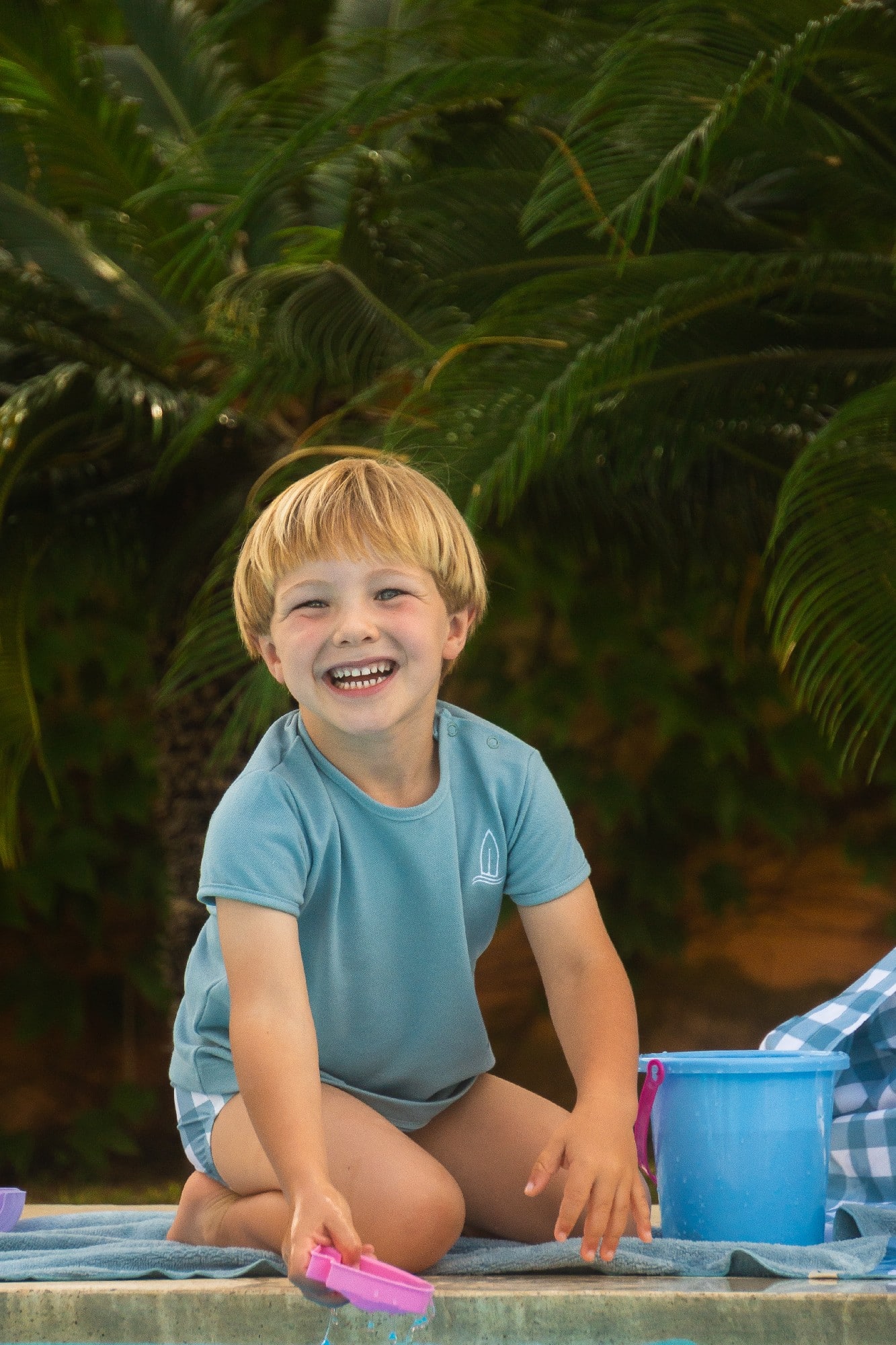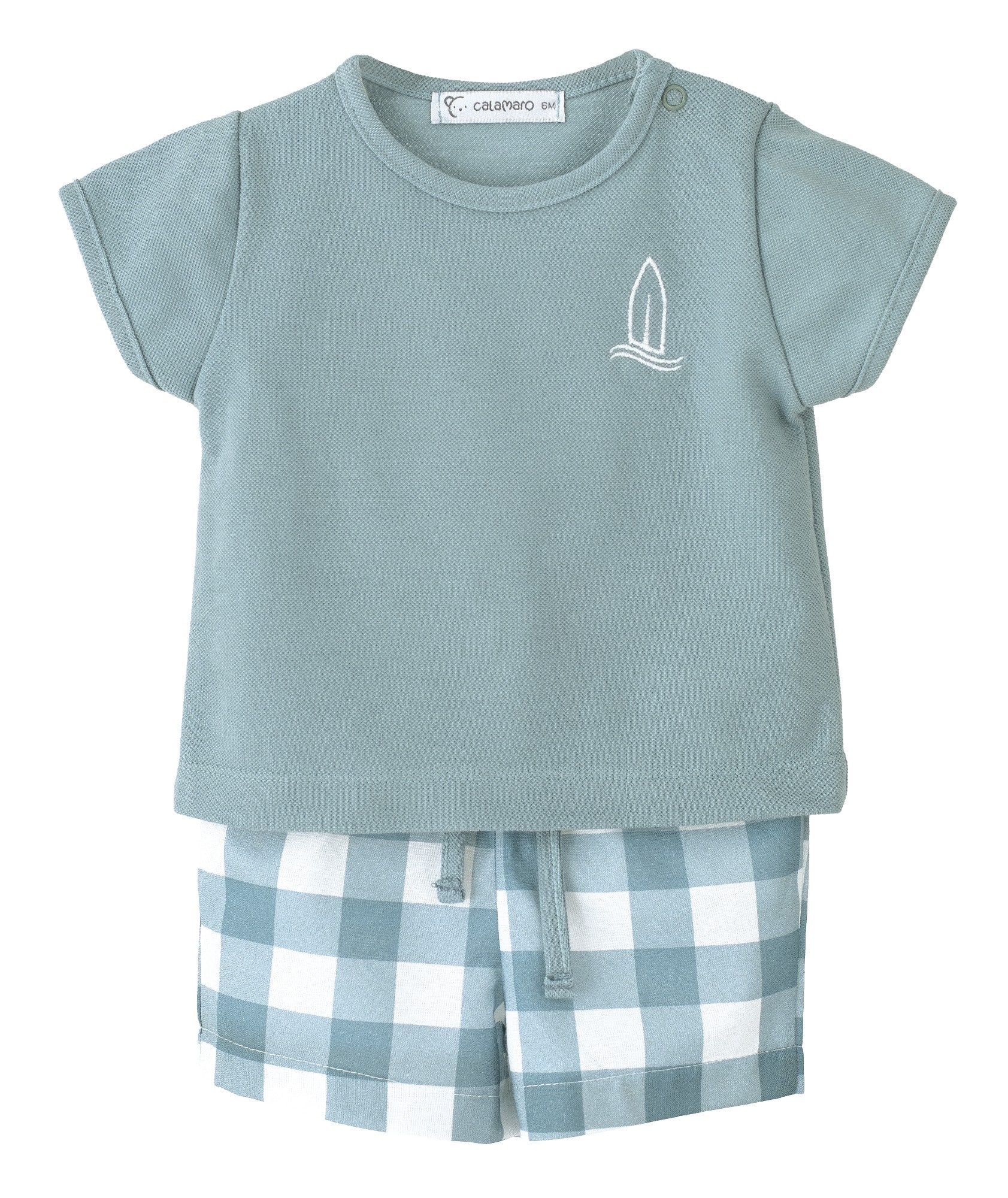 Camiseta de color verde con tejido polo y detalle bordado en el pecho. Apertura en cuello con corchetes.