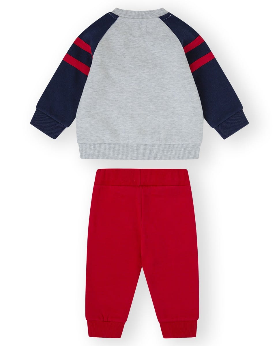Conjunto 100% algodón con interior afelpado en color rojo y gris.