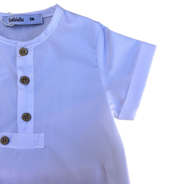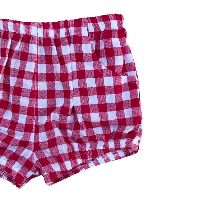 Conjunto 100% algodón con estampado de cuadro vichy en color rojo y blanco.