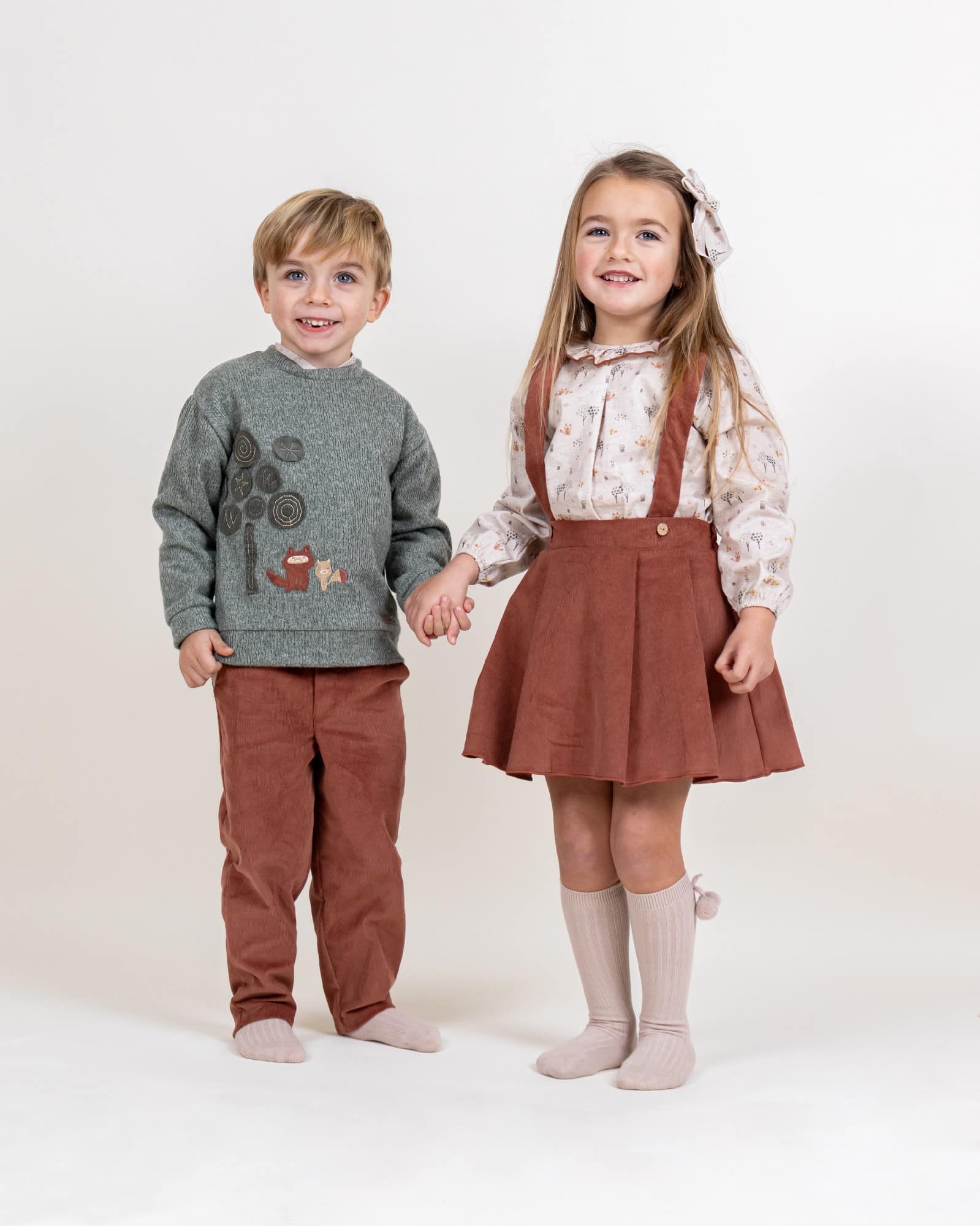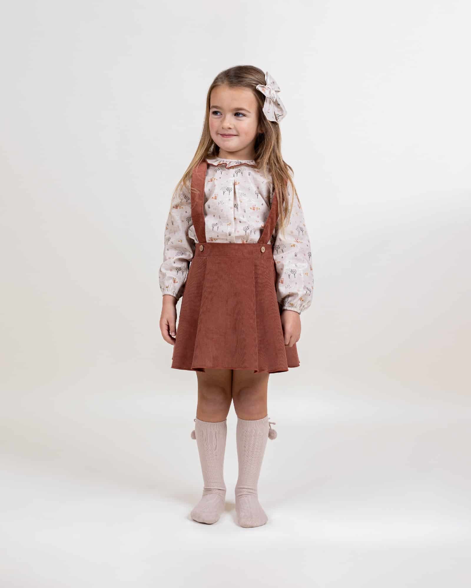 Camisa de algodón en color lino con estampado de animalitos. Detalle volante en el cuello y apertura completa en la parte trasera.