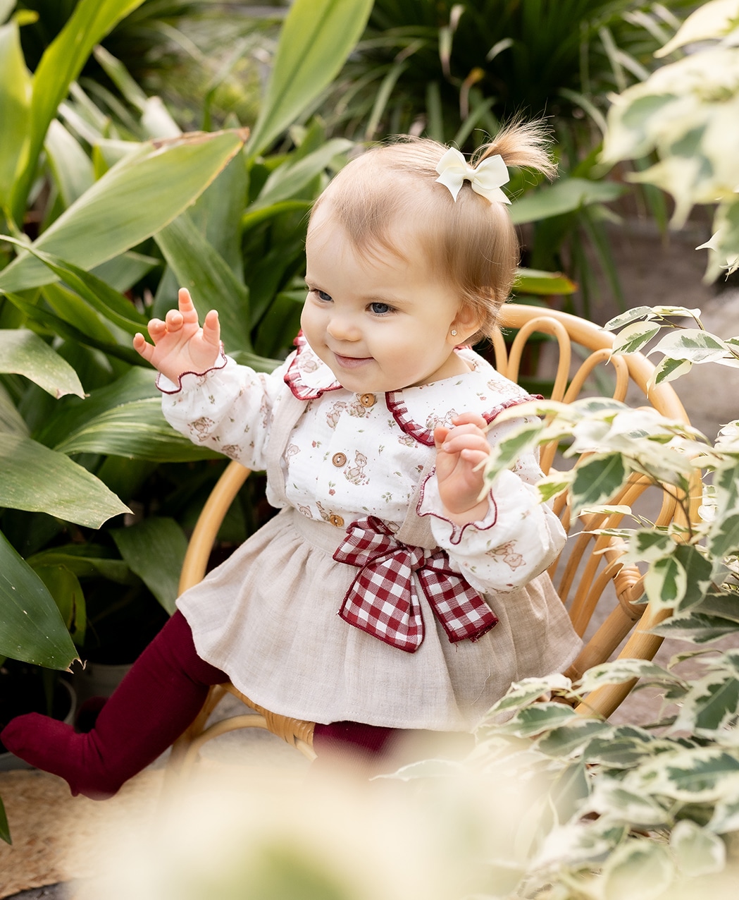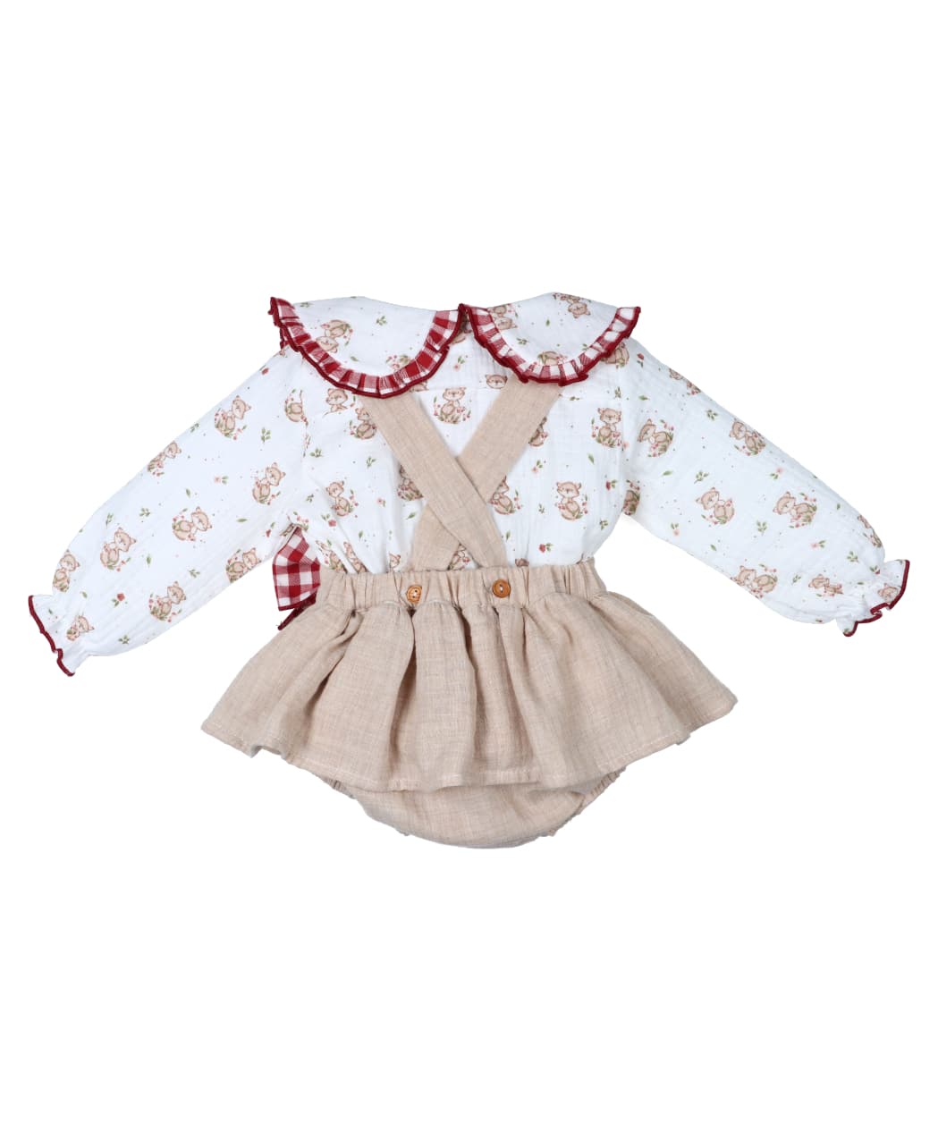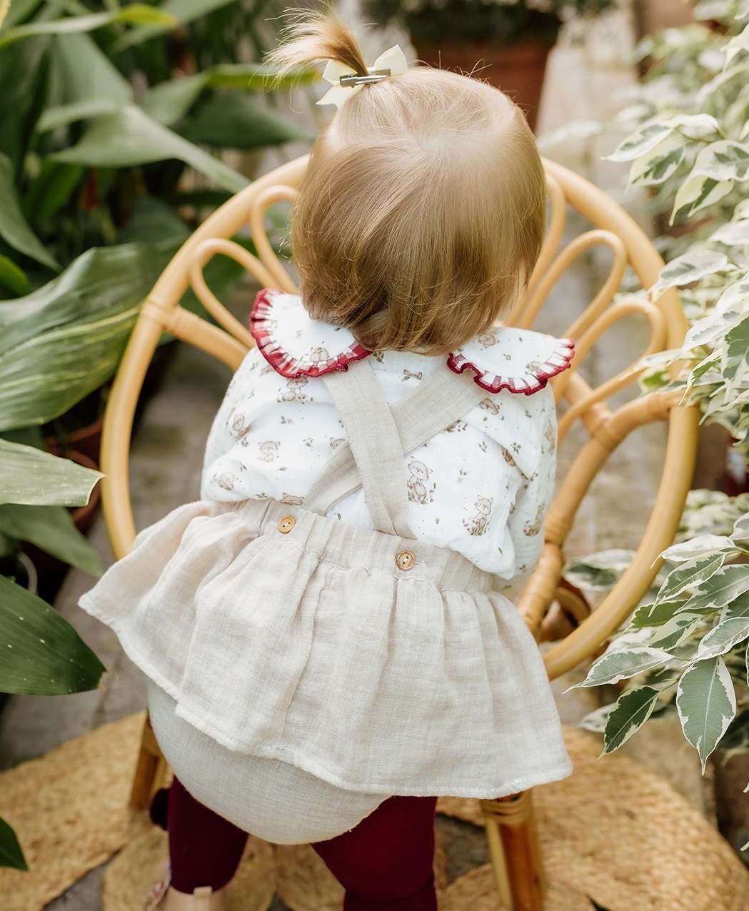 Conjunto bebé blusa y ranita con tirantes con tejido bambula.