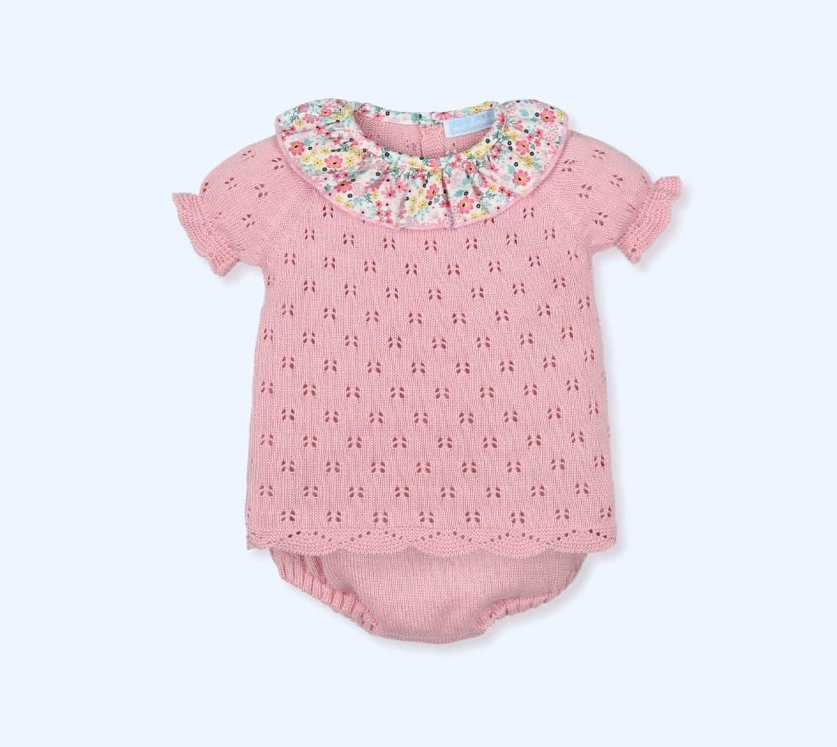 Conjunto ranita de hilo perlé (Dralón) en color rosa empolvado.