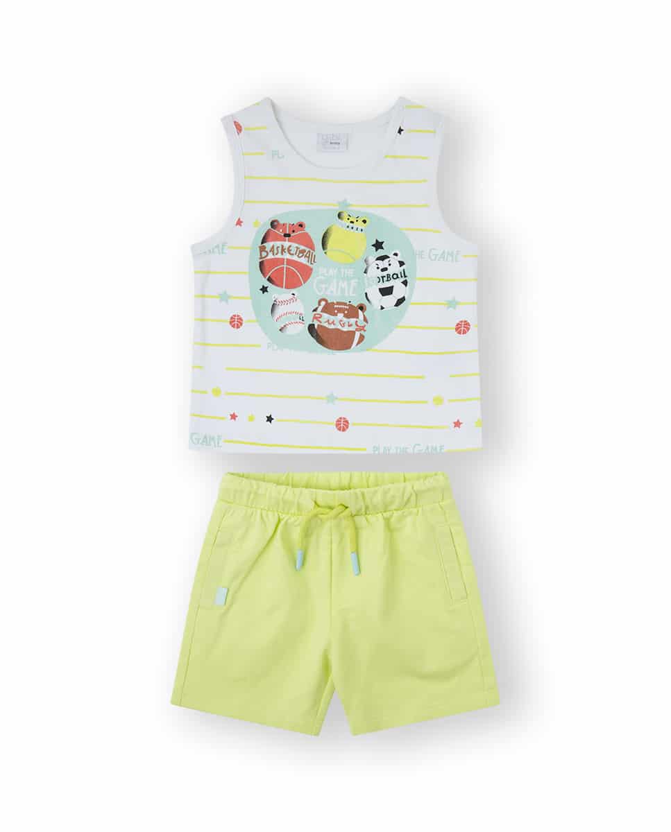 Conjunto 100% algodón en color blanco y verde pistacho.