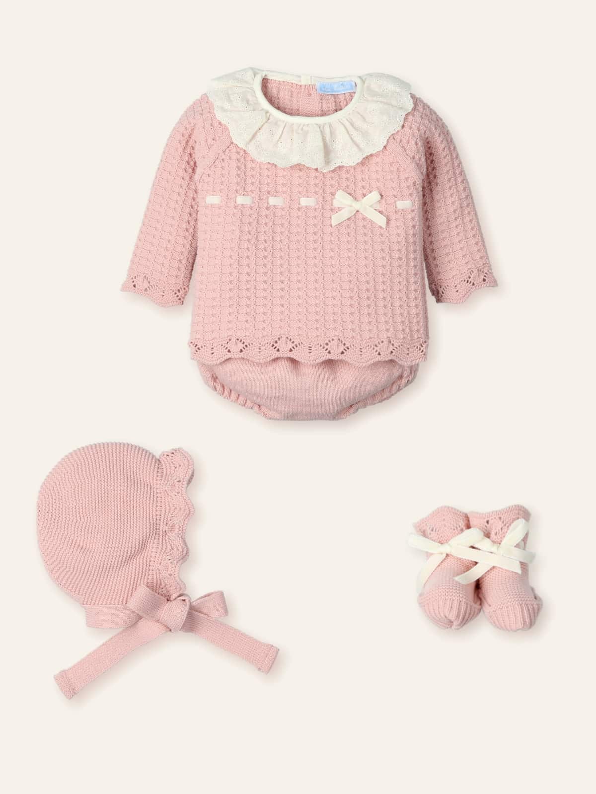 Conjunto 4 piezas con tejido Dralón en color rosa empolvado.