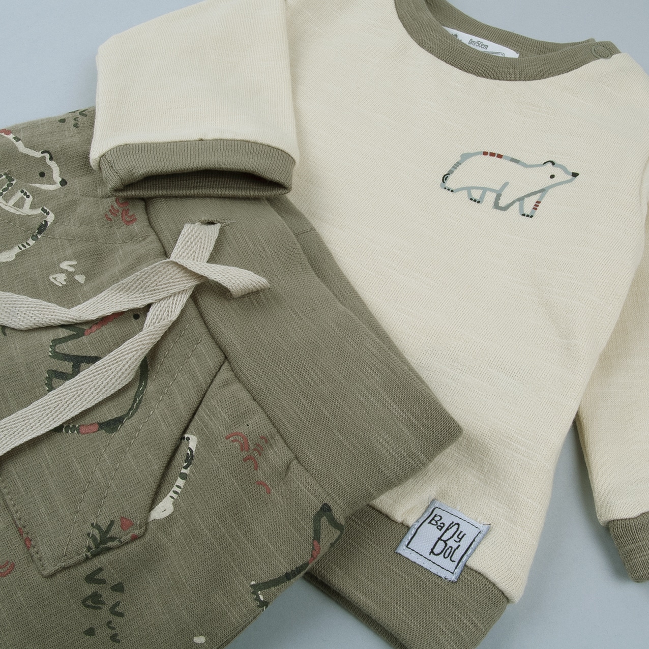 Conjunto 2 piezas 100% algodón en color verde caqui y lino.