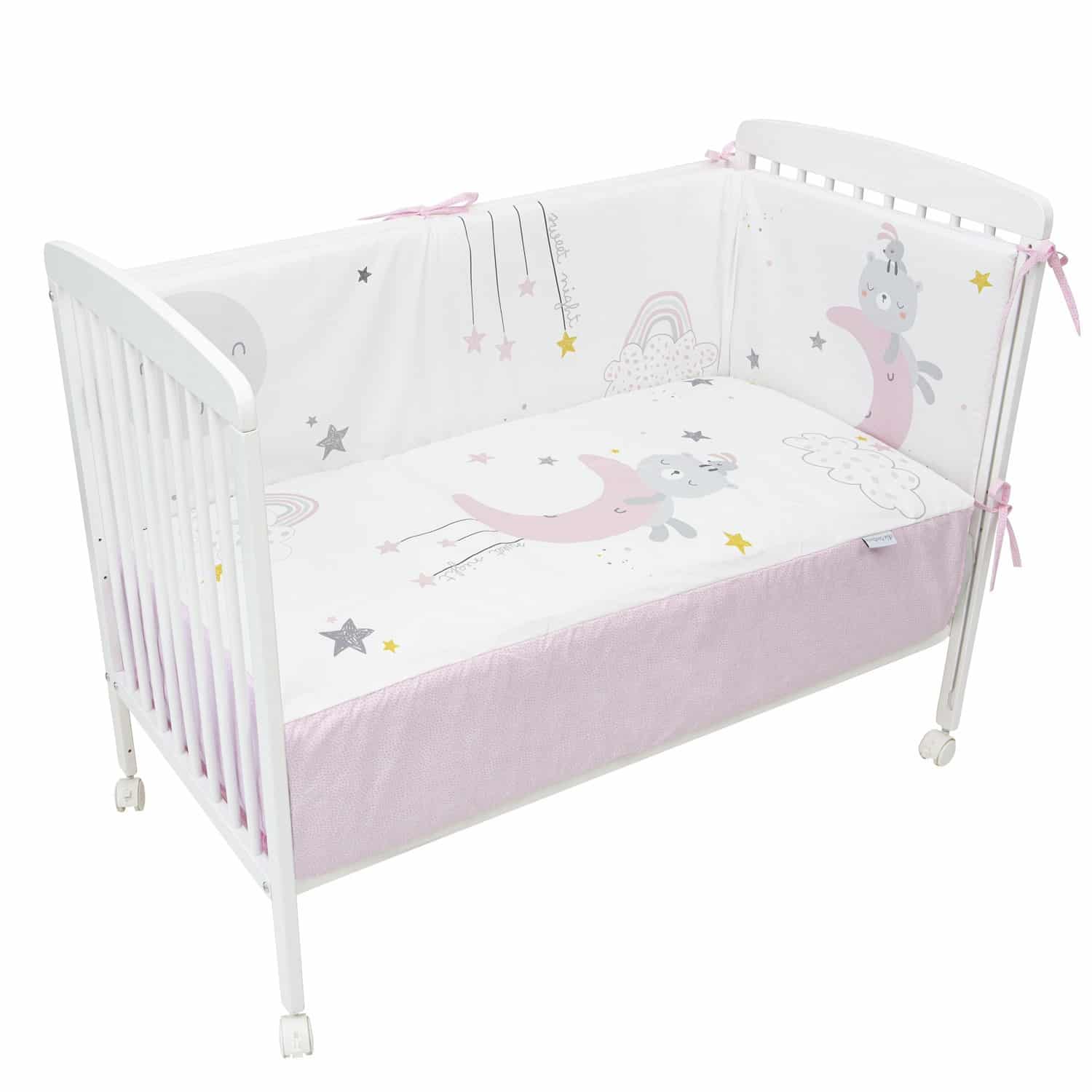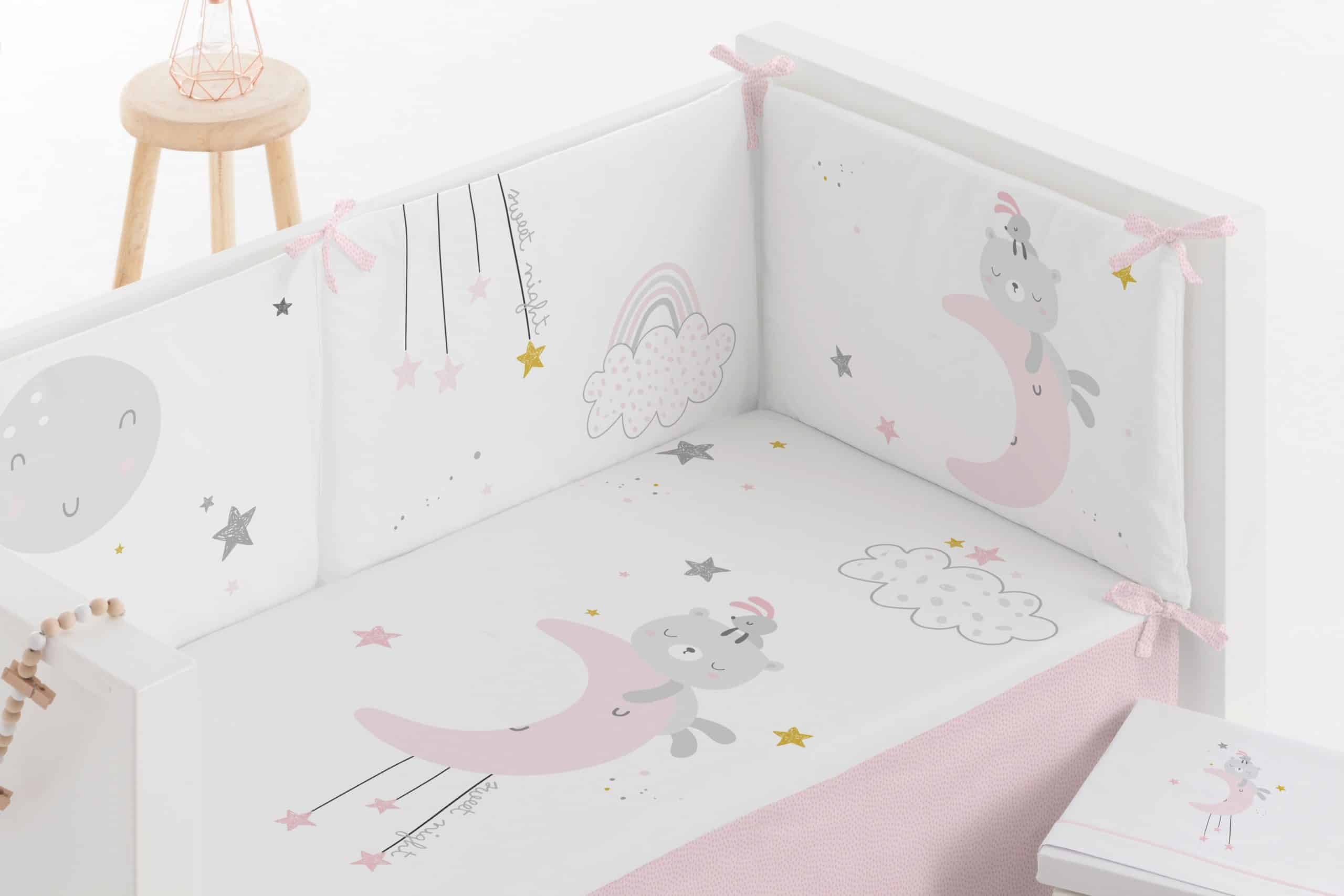 Edredón y protector para cuna maxicuna de la colección Dulces Sueños Rosa. De la marca BimbiDreams.