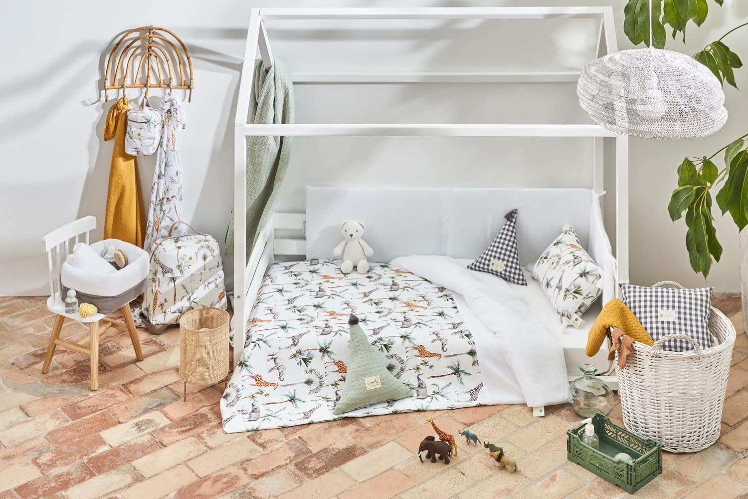 Funda nórdica de color lino con estampado de jirafas.