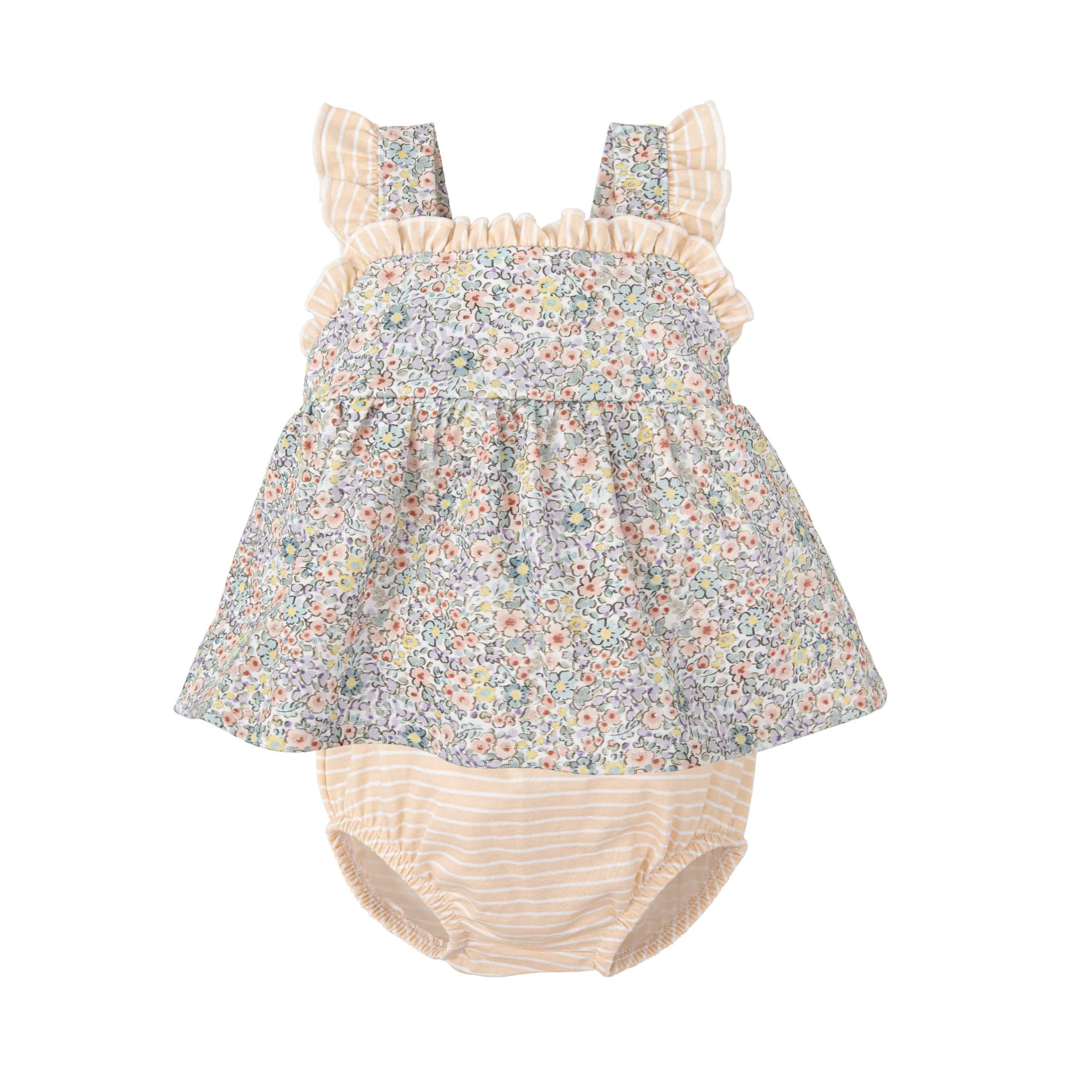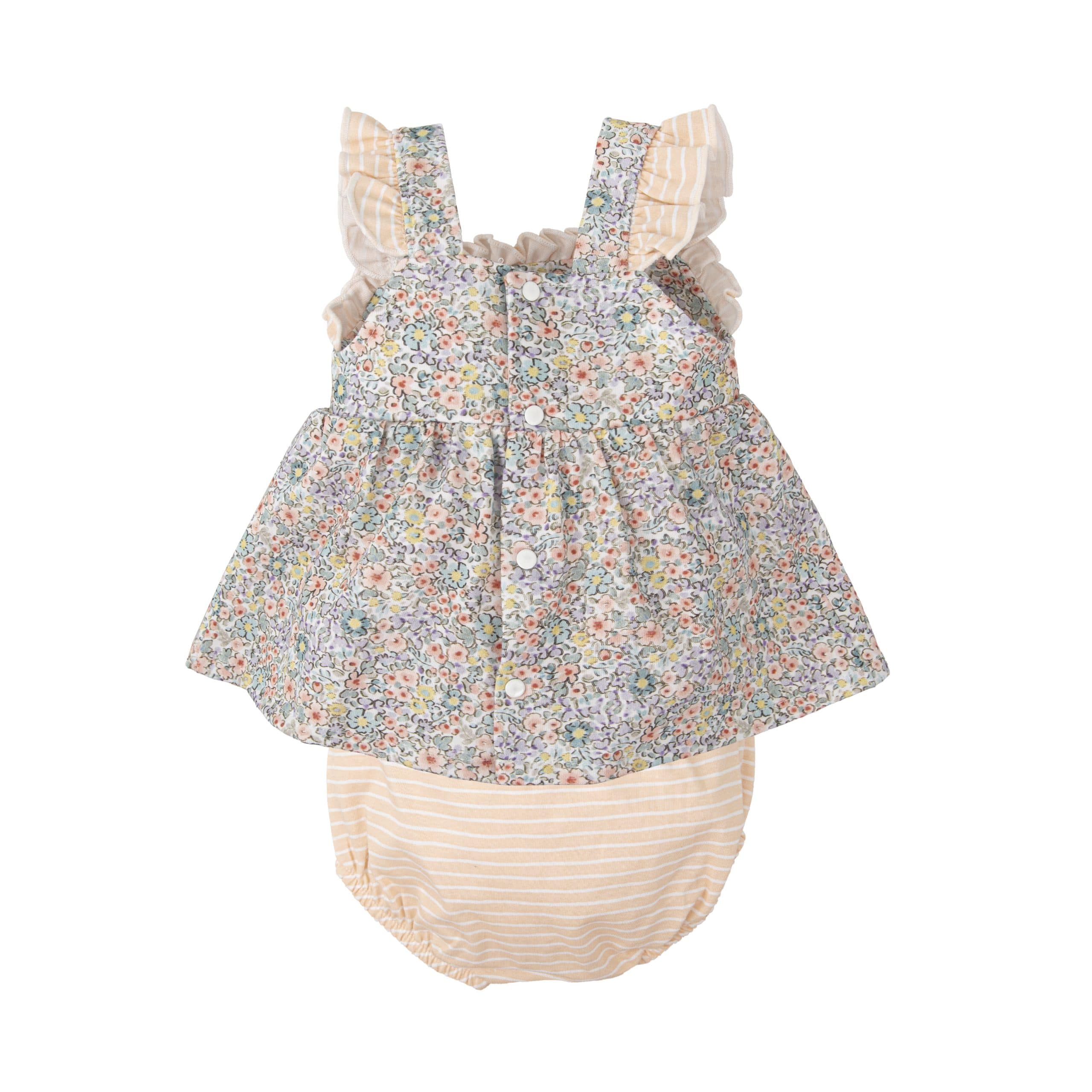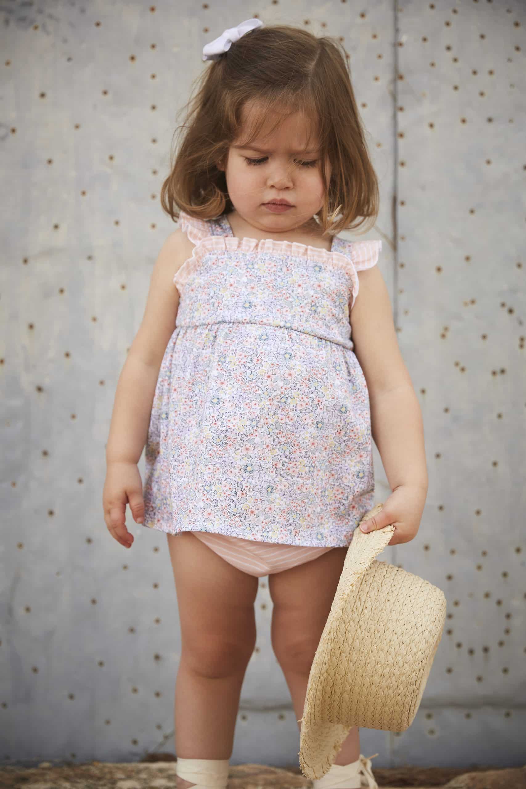 Jesusito de tirantes 100% algodón con estampado de flores en tonos azul y salmón.