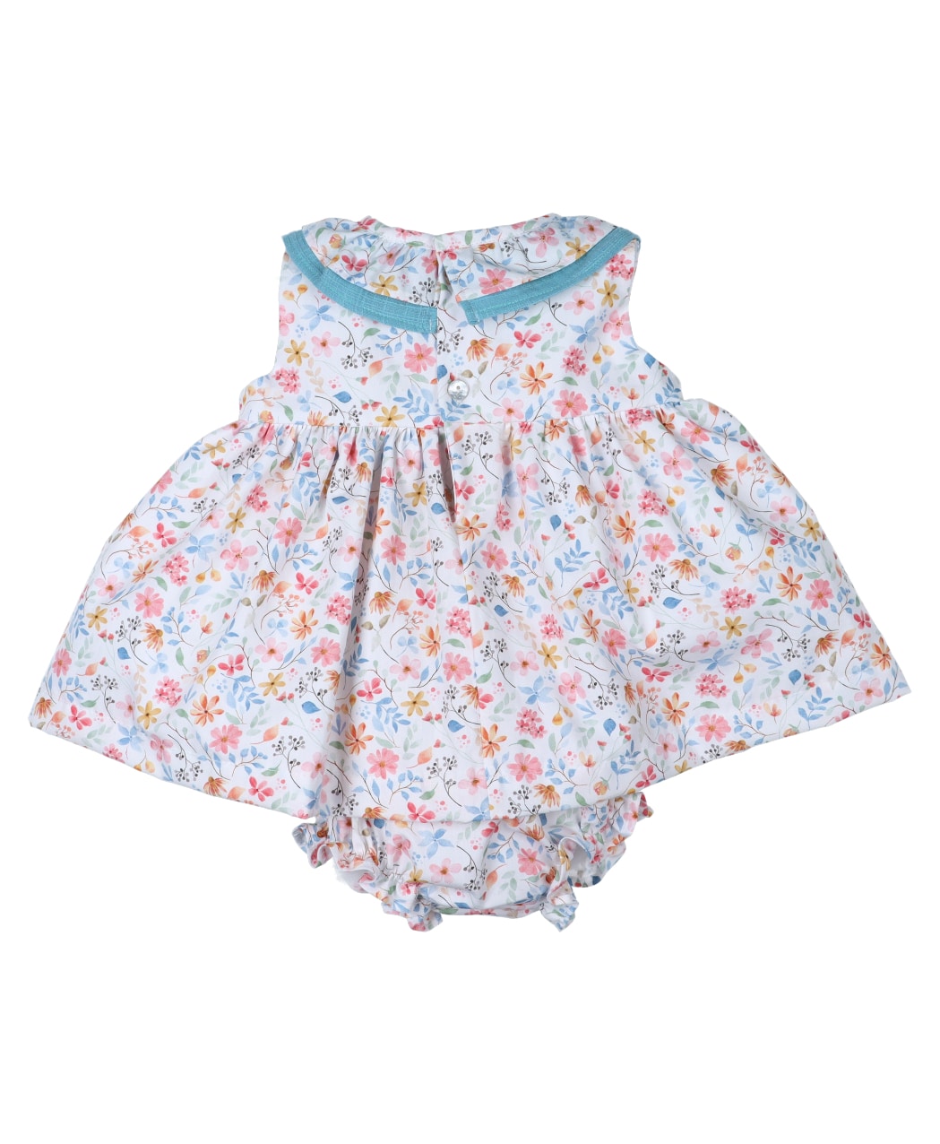 Jesusito de color blanco con estampado de flores liberty en tonos turquesa.