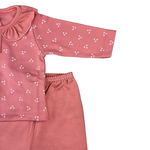 Conjunto 100% algodón en color naranja oscuro y blanco con estampado.