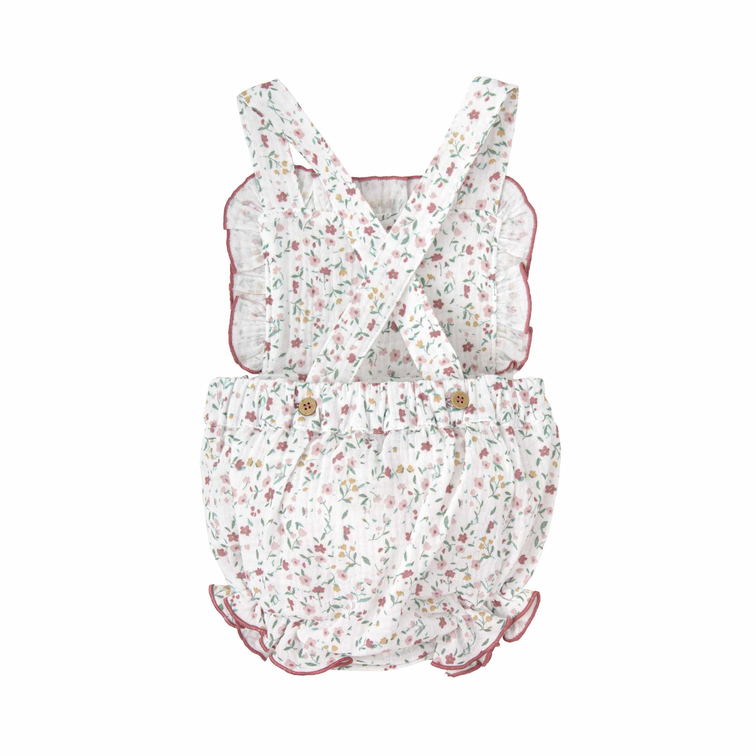 Peto con tejido bambula en color blanco. Estampado de flores en fucsia.