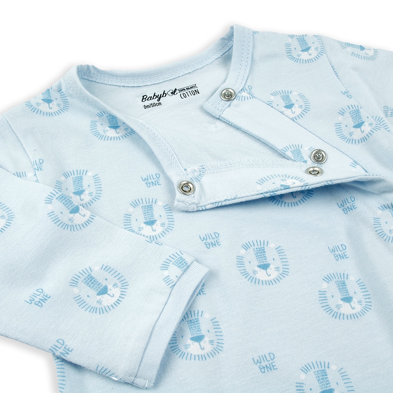 Pelele 100% algodón en color azul celeste y estampado de leones.