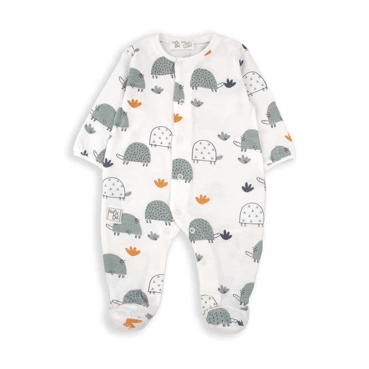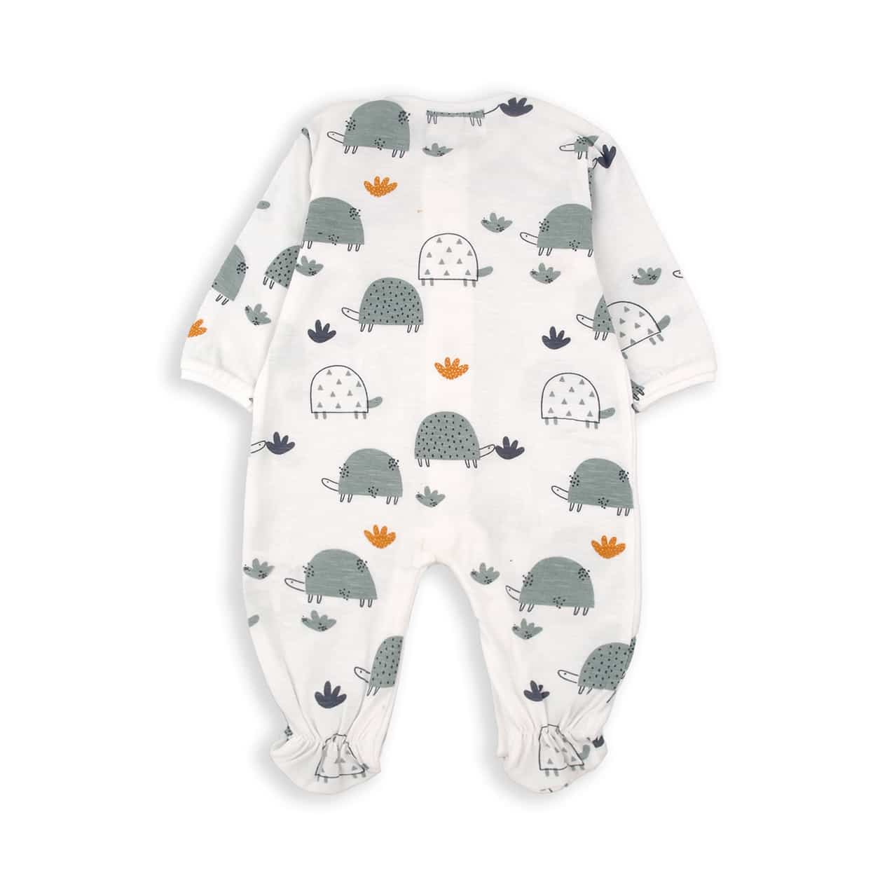 Pelele 100% algodón en color blanco con estampado tortugas en azul.