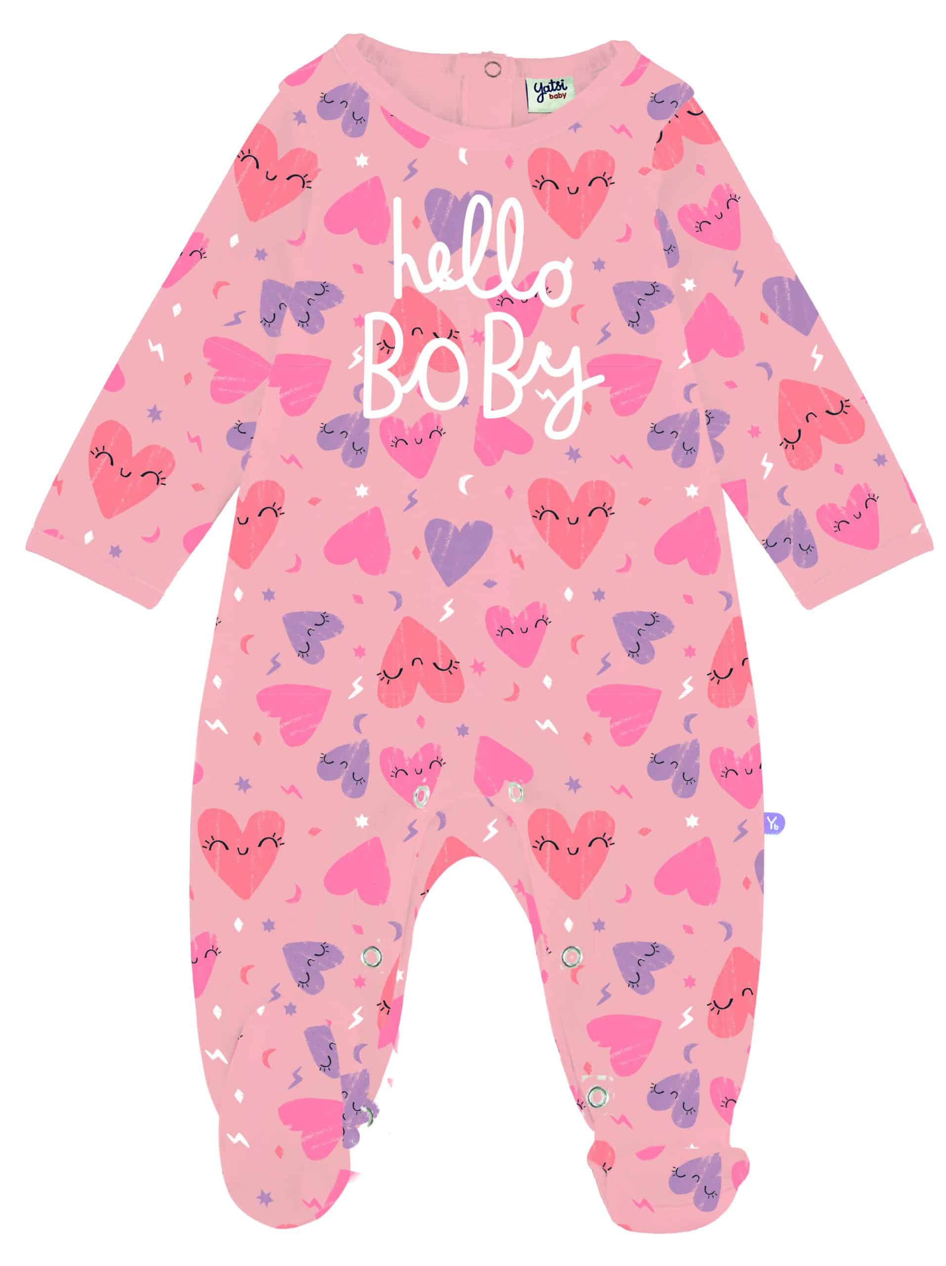 Pelele 100% algodón de color rosa con estampado de corazones.