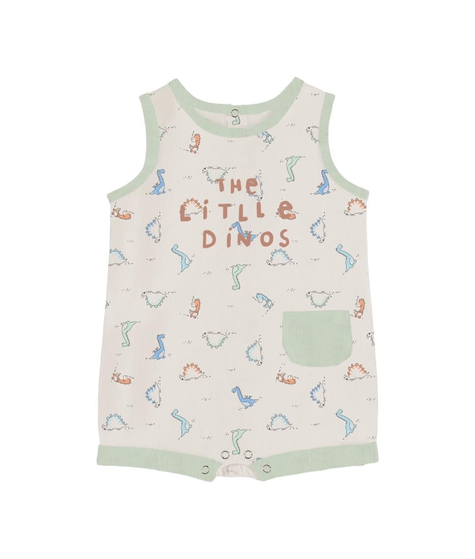 Pelele con tejido canalé en color crudo con estampado de dinos.