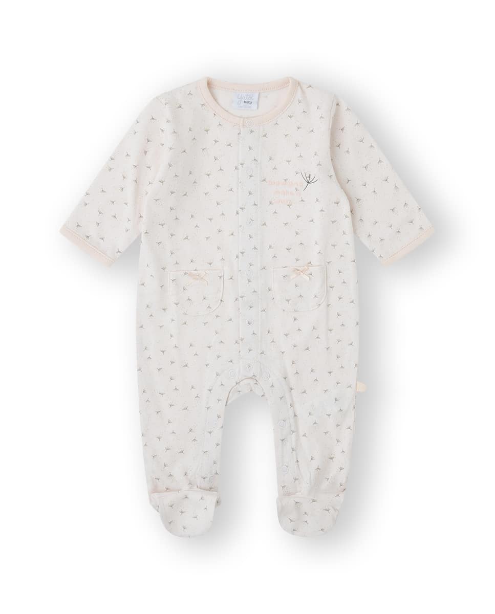 Pelele 100% algodón de color rosa nude con estampado de florecitas.