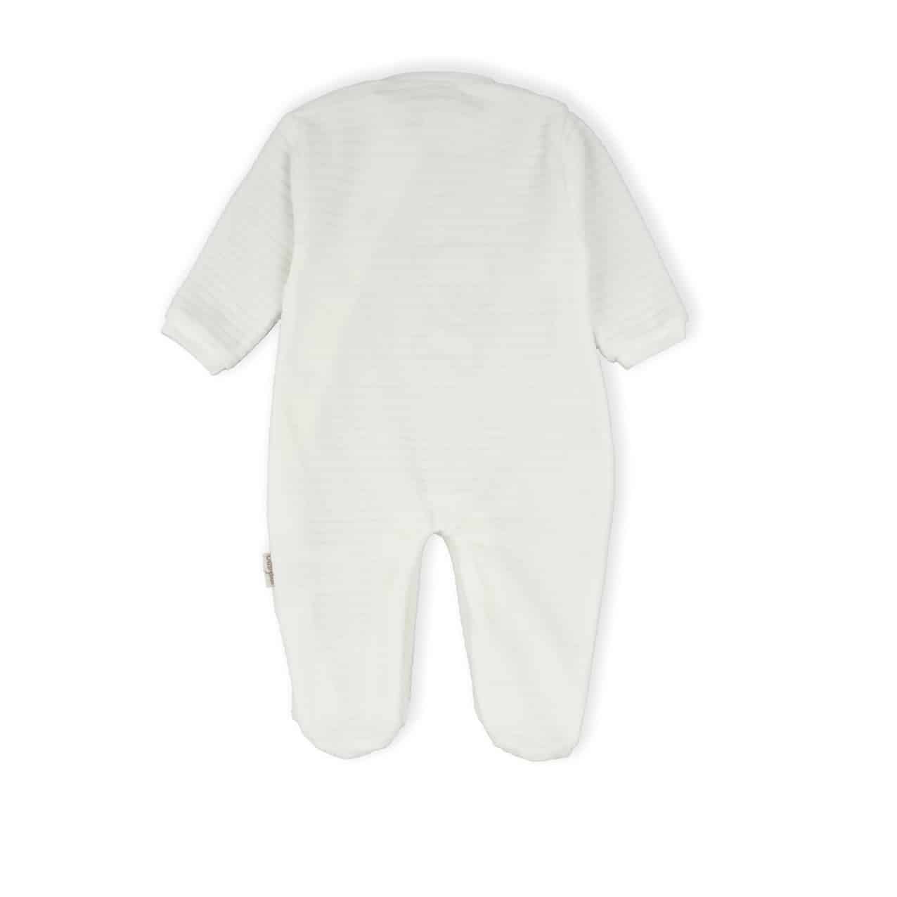 Pelele de terciopelo acanalado 100% algodón en color crudo con bordado osito marrón en el pecho.