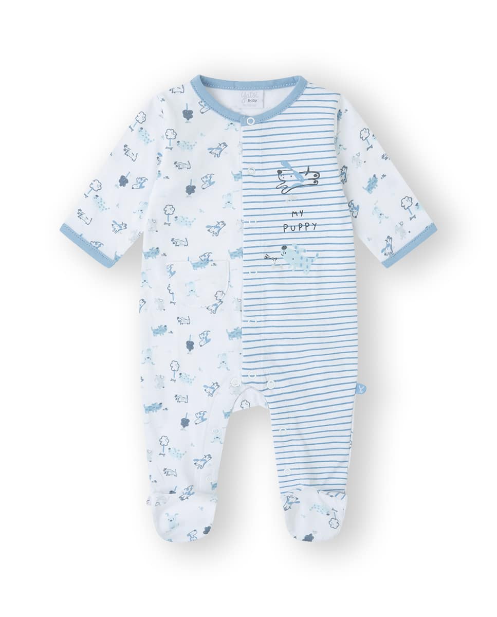 Pelele 100% algodón en color blanco y azul.