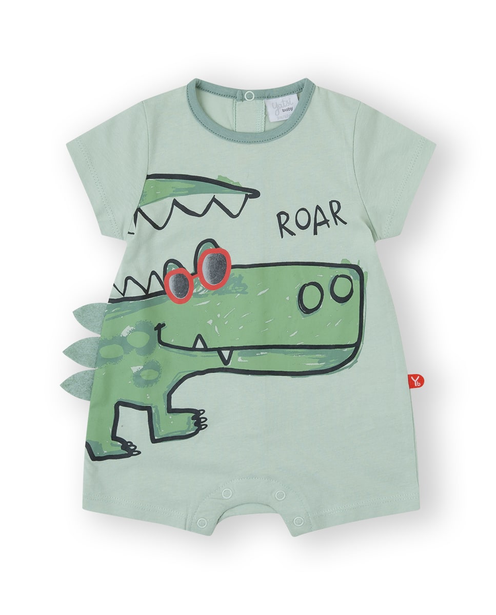 Pelele 100% algodón de color verde con estampado cocodrilo.