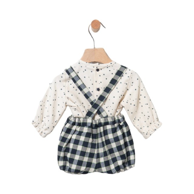 Conjunto peto 100% algodón cálido con estampado de cuadro vichy y estrellas.