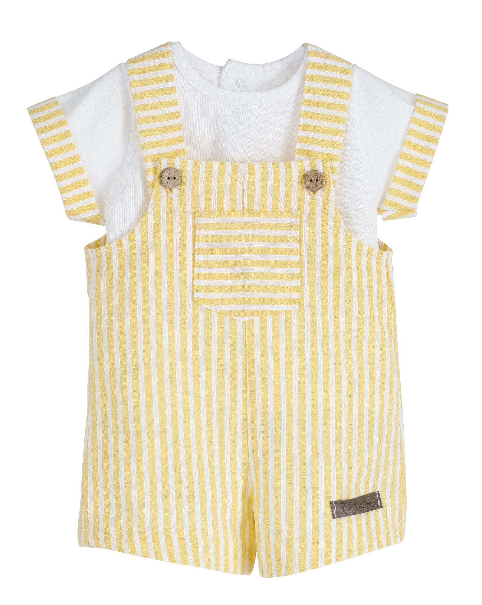 Camiseta de manga corta 100% algodón en color blanco con detalles amarillos.