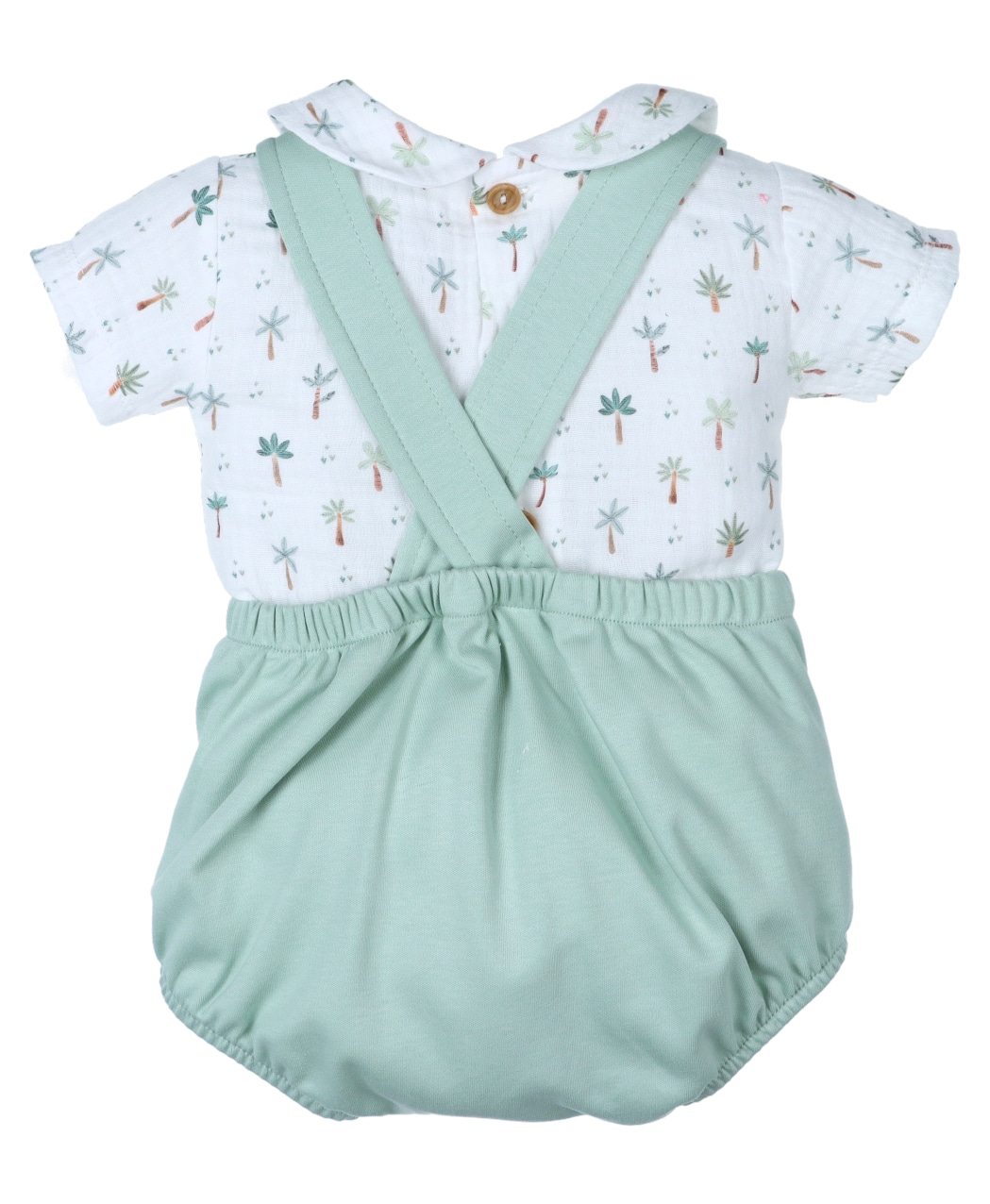 Camisa con tejido bambula en color blanco y estampado de palmeras en verde.