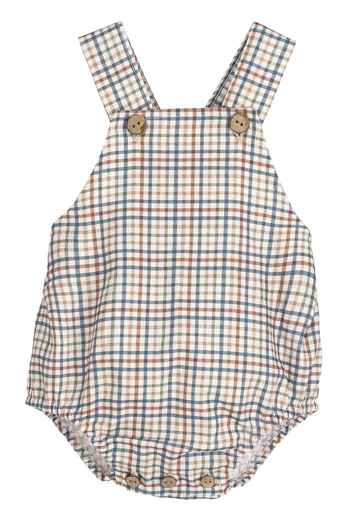 Peto de color crudo con estampado de cuadros en tonos azul francia.