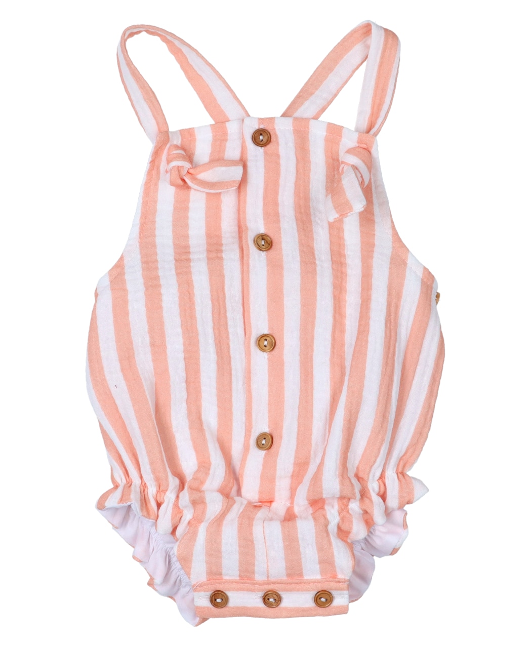 Peto tejido bambula con estampado de rayas en color naranja y blanco.