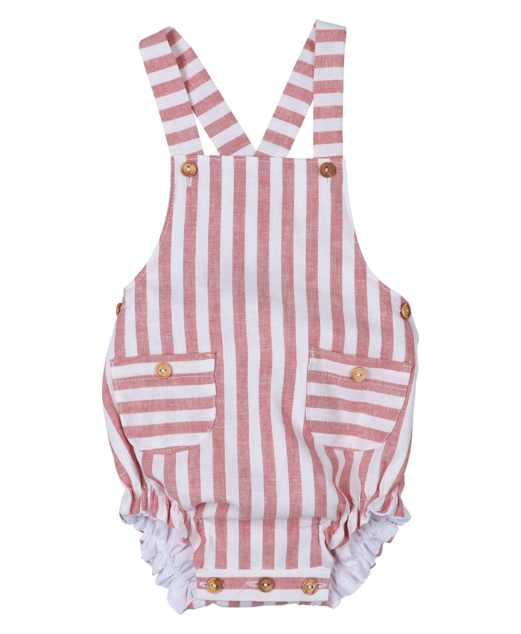 Estampado de rayas en rojo y blanco y bolsillos decorativos.