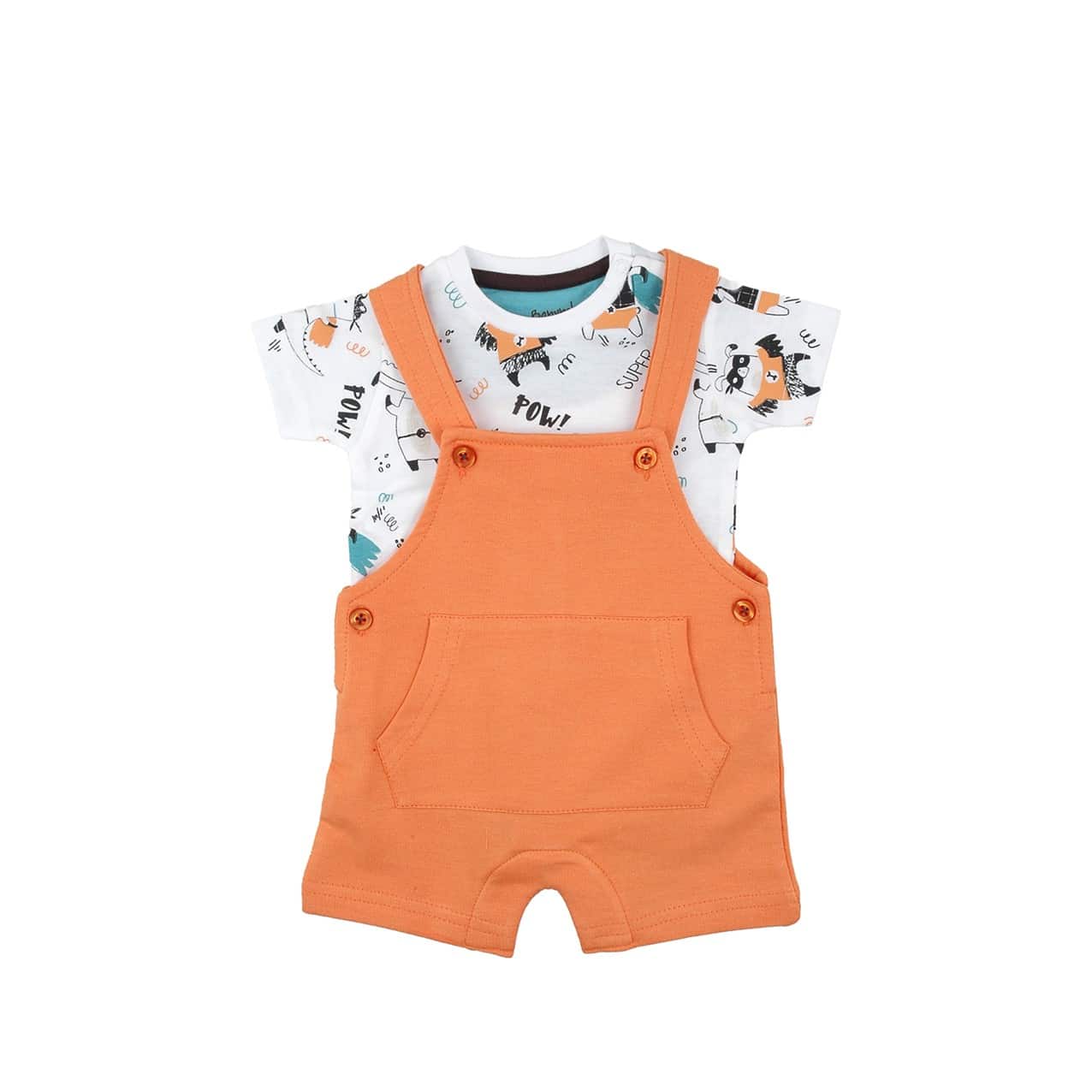 Peto de color naranja con apertura de botones.