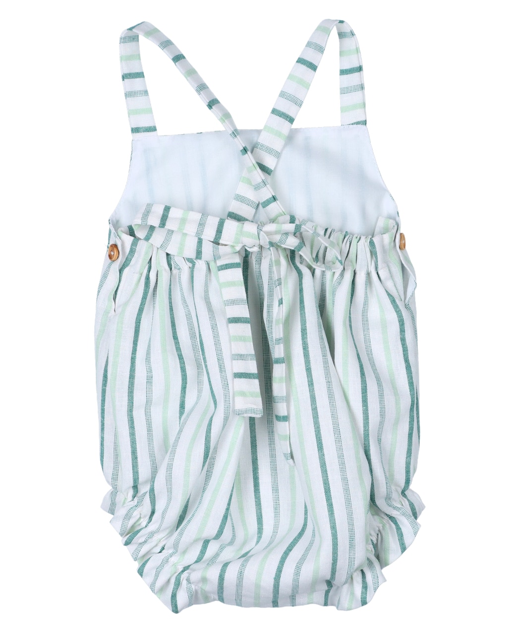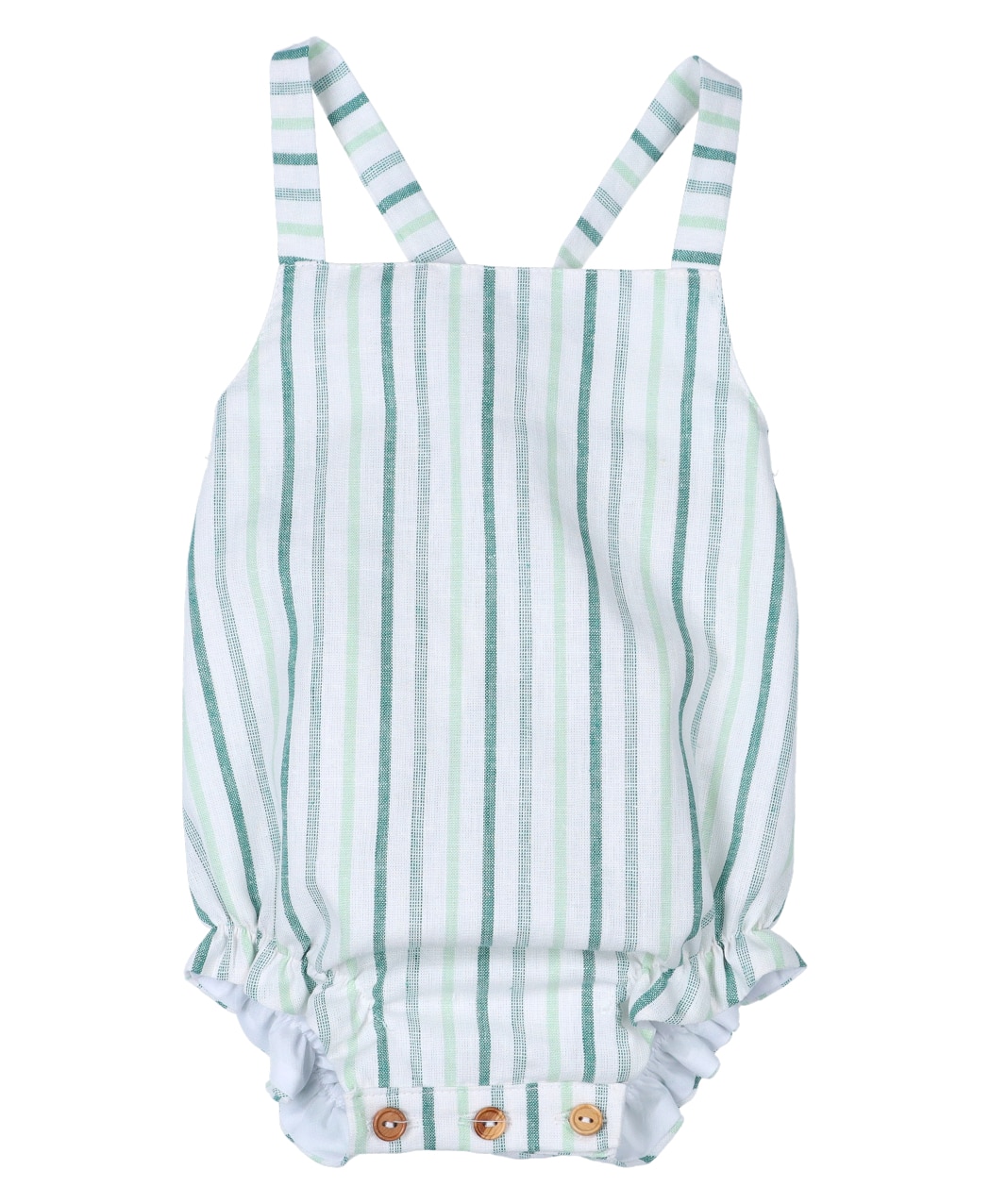 Peto con tejido de lino en color blanco. Estampado de rayas en tonos verdes.