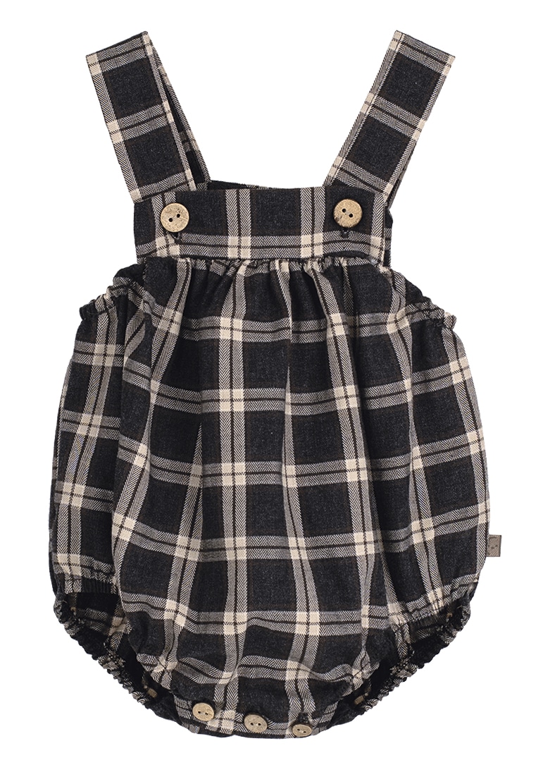 Peto de algodón en color gris antracita con estampado de cuadros en color beige.