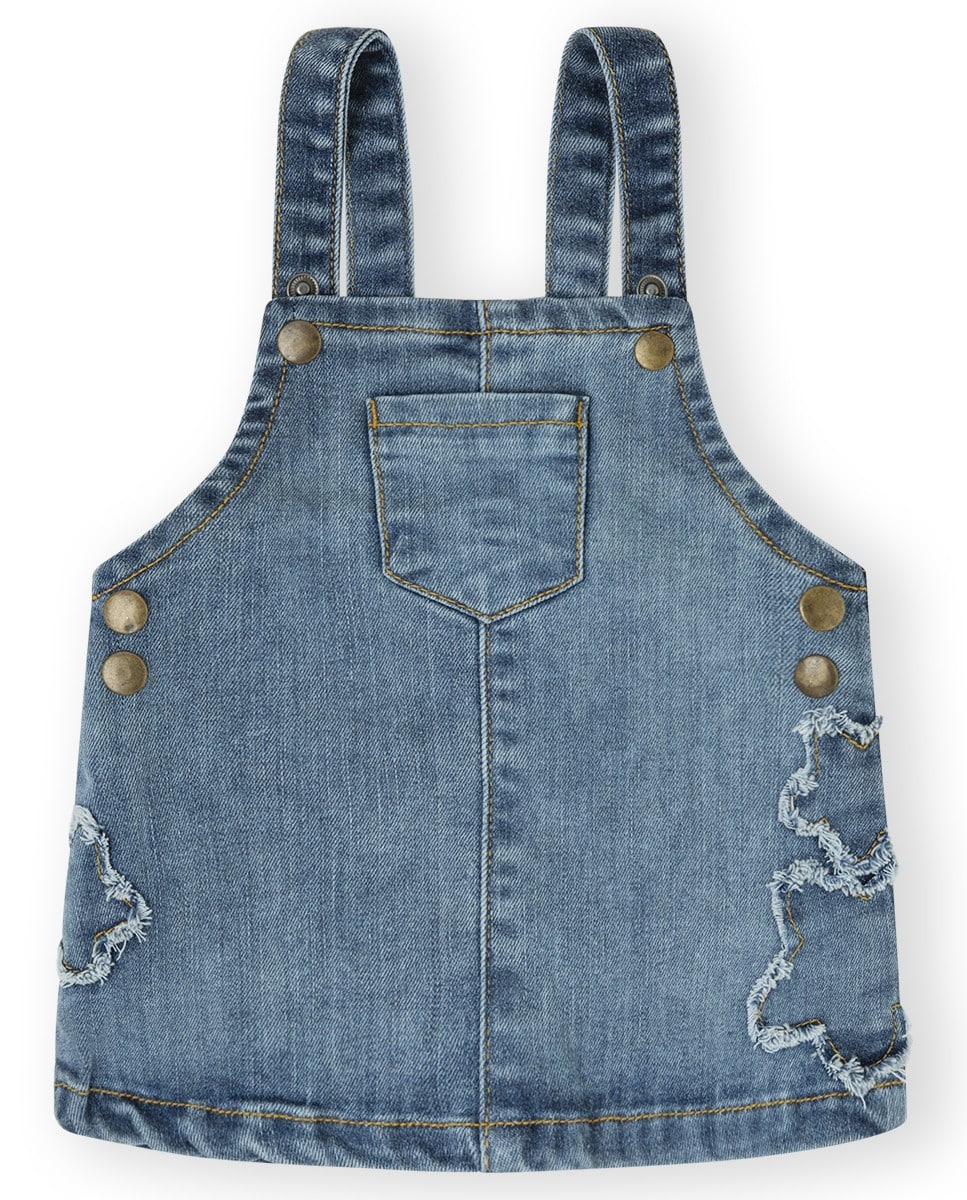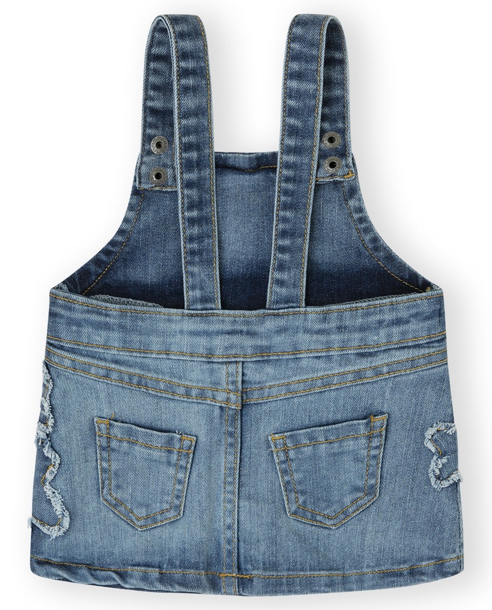 Pichi vaquero con elástico en color clarito. Detalle flores bordadas a ambos lados.