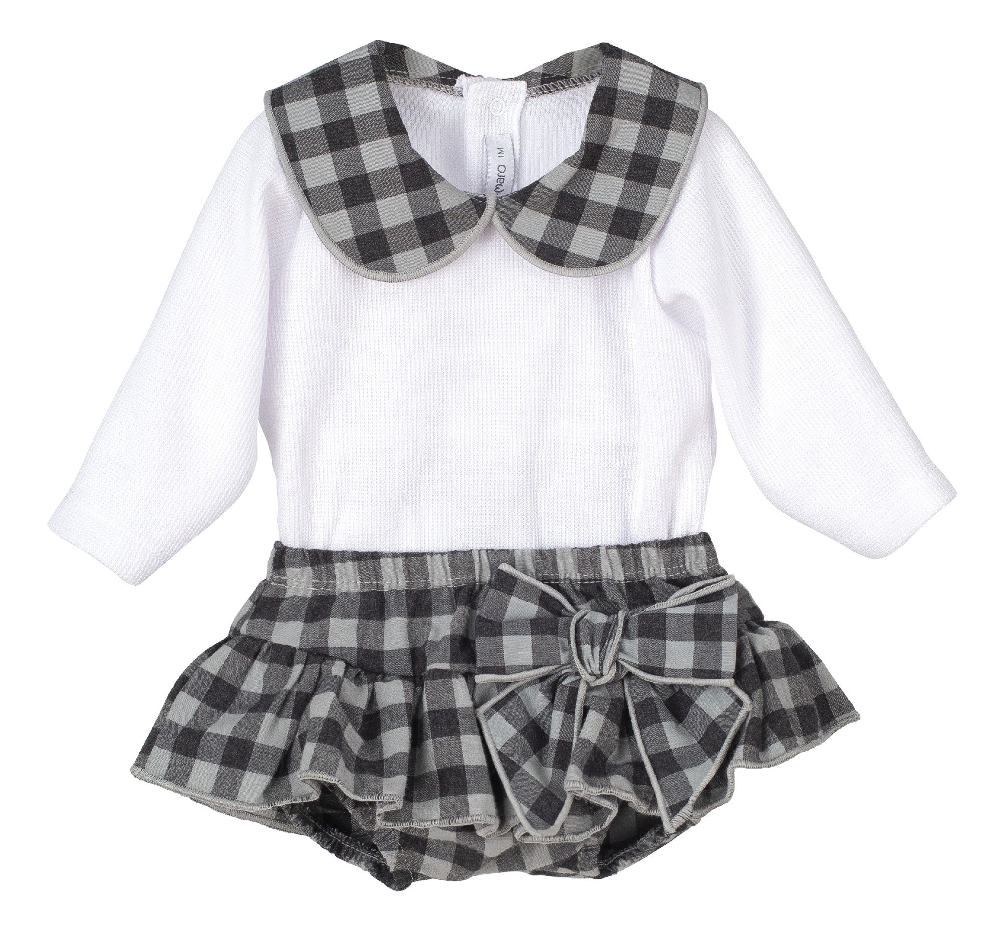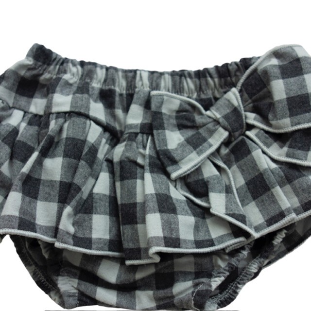 Ranita con estampado cuadro vichy de color gris oscuro y lazo decorativo.