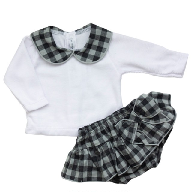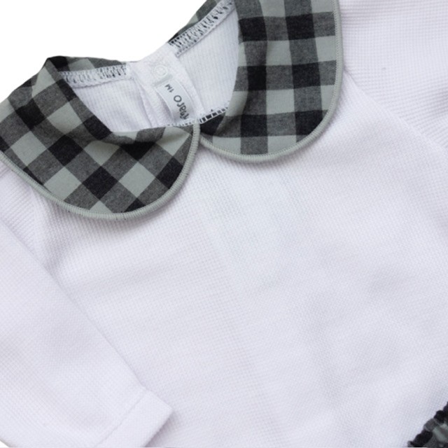 Jersey de algodón con tejido canutillo y afelpado en el interior. Detalle cuello bebé con estampado de cuadro vichy en color gris oscuro.